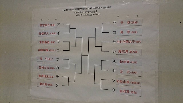 平成26年度女子団体決勝トーナメント抽選結果